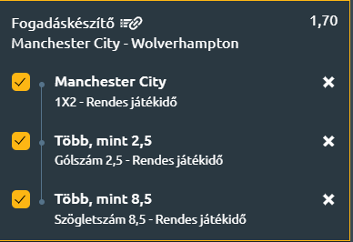 Tipp: ManCity nyer + több mint 2,5 gól + több mint 8,5 szöglet