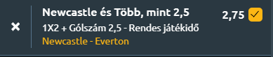 Tipp: Newcastle nyer + több mint 2,5 gól