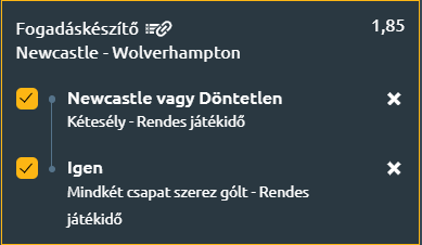 - A Wolves szintén jó formát mutat Vitor Pereira irányítása alatt, bár a kiesőzóna szélén helyezkednek el. Az FA-kupában továbbjutottak a Bristol City ellen, és a bajnokságban idegenben három meccse veretlenek, mindegyiken legalább két gólt szerezve. Ugyanakkor a védelmük továbbra is a Premier League leggyengébbje, 45 kapott góllal. A Newcastle támadópotenciálja és hazai pályán nyújtott stabil teljesítménye miatt esélyesebb a győzelemre. Bár a Wolves Cunha visszatérésével erősödik, gyenge védelmük és a Newcastle lendülete megnehezíti a dolgukat. Szoros mérkőzésre számíthatunk, ahol nem kap ki a Newcastle és mindkét gárda betalál majd.