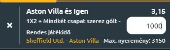 Tipp: Aston Villa nyer + mindkét csapat szerez gólt