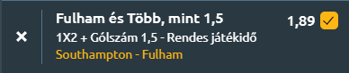 Tipp: Fulham nyer és több, mint 1,5 gól a mérkőzésen