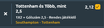 - A Southampton már 12 vereséget szenvedett el a 15 mérkőzésből, így valószínű, hogy még egy pontot is nehéz lesz szerezniük a Tottenham ellen, annak ellenére, hogy hazai pályán, a St Marys Stadionban játszanak. A Chelsea elleni meccs csalódás volt Ange Postecoglou számára, hiszen csapata egy látszólag nyerő pozícióból veszítette el a mérkőzést, így ma kettőzött erővel küzdenek a javításért. A Manchester United és Manchester City ellen elért 3-0-s és 4-0-s idegenbeli győzelmek azt mutatják, hogy a Tottenham képes jó játékra távol Londontól is, így ma ők az egyértelmű esélyesek! A Tottenham-győzelem 1,72-ért már önmagában value, de ha mellérakjuk az over 2,5-et is, amire a hazaiak botrányosan gyenge védekezése miatt van esély, akkor egy 2,12-es szorzót kaphatunk!