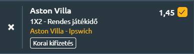Ezek az ötletek kiválóan alkalmasak arra, hogy egy kétmeccses duplázóban az egyik tagot adják. Az odds alacsonyabb, viszont ezzel párhuzamosan a kockázat mértéke is csökken. A nemzetközi kupás helyekért küzdő-, jelenleg csak 8. helyen álló Aston Villa a kiesés ellen harcoló, most éppen a 19. Ipswich csapatát fogadják.