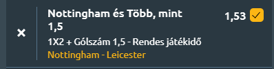 Ezek az ötletek kiválóan alkalmasak arra, hogy egy kétmeccses duplázóban az egyik tagot adják. Az odds alacsonyabb, viszont ezzel párhuzamosan a kockázat mértéke is csökken. A Bajnokok Ligája-szereplés kapujában álló Nottingham Forest vasárnap délután a már biztos kieső Leicester Cityt fogadja a City Groundon. Míg a hazaiak történelmi sikert hajszolnak az élvonalban, a vendégek már csak a becsületükért küzdenek egy nehéz szezon végén.