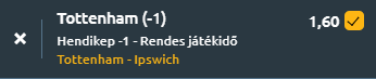 Ezek az ötletek kiválóan alkalmasak arra, hogy egy kétmeccses duplázóban az egyik tagot adják. Az odds alacsonyabb, viszont ezzel párhuzamosan a kockázat mértéke is csökken. Tottenham Hotspur a Premier League egyik legjobb támadójátékát nyújtva fogadja a frissen feljutott, de eddig gyengén teljesítő Ipswich Town csapatát. Míg a hazaiak lendületben vannak és különösen otthon eredményesek, az Ipswich Town továbbra is nyeretlen a 2024-25-ös idényben, és újabb londoni kirándulásuk előtt nehéz helyzetben vannak a kiesés elkerüléséért vívott harcban.