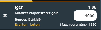 - A Luton három mérkőzés óta veretlen az összes bajnokságban, az elmúlt egy hónapban javítottak a teljesítményükön, és már csak egy hely választja el őket a biztos bennmaradástól a Premier League-ben. Az utolsó tíz meccsükből nyolc BTTS-sel zárult. A következő két hétben, az Everton elleni meccs után a Luton a Brighton, a Newcastle és a Sheffield United ellen játszik, ebből a három meccsből kettő hazai, és igyekezniük kell minél több pontot szerezniük.