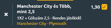 Ezek az ötletek kiválóan alkalmasak arra, hogy egy kétmeccses duplázóban az egyik tagot adják. Az odds alacsonyabb, viszont ezzel párhuzamosan a kockázat mértéke is csökken. A Manchester City az FA-kupa negyeddöntőjébe jutásért fogadja a másodosztályú Plymouth Argyle csapatát az Etihad Stadionban. Míg a hazaiak egy újabb kupasikerre készülnek, addig a vendégek egymás után harmadik Premier League-csapatukat búcsúztatnák, miután már kiejtették a Brentfordot és a Liverpoolt. Vajon a Championship újonca képes lesz-e egy újabb szenzációra, vagy a Manchester City könnyedén érvényesíti a papírformát?
