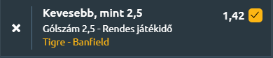 - Az Argentin bajnokság meccsei magyar idő szerint már keddre virradó éjjel vannak! A Tigre kiváló formában van, hiszen legutóbbi három hazai meccsét megnyerte, legutóbb pedig idegenben 4-1-re győzte le az Independiente Rivadaviát, ahol 54%-os labdabirtoklás mellett hat kaput eltaláló lövést jegyzett. David Romero duplázott, míg Ignacio Russo és egy öngól révén alakult ki a végeredmény. Ezzel szemben a Banfield gyenge formában van, hiszen két egymást követő vereséget szenvedett, legutóbb 1-0-ra kikapott a Boca Juniorstól hazai pályán. A legutóbbi egymás elleni találkozójukon a Tigre idegenben is jobbnak bizonyult, 1-0-ra nyert Banfield ellen. Az elmúlt tíz bajnokiját tekintve a Tigre ötször nyert, míg a Banfield csupán kétszer, ráadásul a vendégek támadójátéka gyengének tűnik, hiszen mindössze 0.7 gólt szereznek átlagosan meccsenként. A hazai csapat kiegyensúlyozottabb, kevesebb gólt kap (0.6 átlagban), így a vendégek sokkal inkább fognak a védekezésre összpontosítani és az esetleges kontrákból való gólszerzésre törekedni. Mindez azt jelenti, hogy Tigre hozza a szokásos intenzív darálós játékát, aminek a következménye kevés gól lesz. A hazai győzelem esélye is magas.