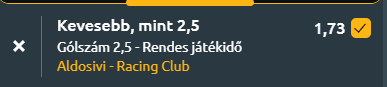 - Szintén a Liga Profesional de Fútbol soron következő fordulójában az Aldosivi a Racing Club csapatát fogadja a mar del platai Estadio José María Minella stadionban. A Racing dominanciáját jól mutatja, hogy az utóbbi öt közös mérkőzésükből négyet megnyert, egy döntetlen mellett, és ezek során 3.6 gólt átlagolt meccsenként, míg Aldosivi csak 1 gólt. Bár a Racing legutóbb vereséget szenvedett a nemzetközi porondon az Atlético Bucaramanga ellen, a bajnokságban jobb formát mutatnak, mint az Aldosivi, amely jelenleg csak a 15. helyen áll. A hazai csapat szezonbeli statisztikái gyenge védekezésre utalnak: átlagosan két gólt kapnak meccsenként, miközben 1.08-at lőnek. A statisztikák alapján inkább kevés gól várható: 61% az esély arra, hogy kevesebb mint 2.5 gól esik, és 57% annak valószínűsége, hogy legalább az egyik csapat nem talál be. Ez részben annak tudható be, hogy a Racing idegenben általában óvatosabb taktikát választ, Aldosivi pedig nem elég hatékony elöl, így a gólok száma alacsonyan maradhat.