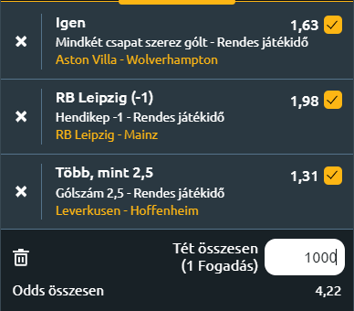 - Aston Villa - Wolverhampton: Mindkét gárda szeret és tud is támadni. A hazaiak még bíznak a BL-csoportkörös indulásban és ezért kell a pont, a Farkasok pedig az EKL-selejtezőben vennének részt. Jó kis pörgős meccs lesz ez gólváltással.