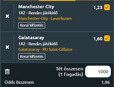 - Manchester City - Bayer Leverkusen: A Manchester City a Premier League-ben elszenvedett újabb vereség után lép pályára, hiszen a Newcastle elleni 2–1-es zakó nemcsak egy négymeccses győzelmi sorozatot zárt le, hanem a bajnoki versenyfutásban is visszavetette Pep Guardiola csapatát. A City mindezzel együtt stabilan teljesít Európában, tíz ponttal áll a negyedik helyen, és a Borussia Dortmund elleni 4–1-es győzelemmel tovább erősítette otthoni félelmetes formáját, ahol már 23 BL-meccs óta veretlen és sorozatban hétszer lőtt legalább két gólt. A vendég Leverkusen azonban felívelő szakaszban érkezik, hiszen Kasper Hjulmand irányítása alatt megszerezték első idei BL-győzelmüket a Benfica otthonában, majd a Heidenheim 6–0-s kiütése és a Wolfsburg 3–1-es legyőzése után a Bundesliga második helyére kapaszkodtak fel. Az elmúlt kilenc tétmeccsükből hetet megnyertek, és mindössze egy siker választja el őket az 50. BL-győzelmüktől, ám sérülések és eltiltások nehezítik helyzetüket, ráadásul a két csapat még soha nem találkozott tétmérkőzésen. A City hazai fölénye, stabil BL-formája alapján a mérleg az angolok felé billen!
