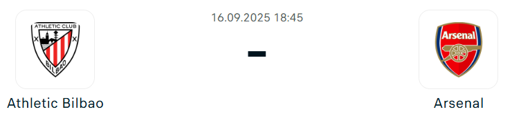 - A Bilbao évek után tért vissza a Bajnokok Ligájába, miután a 2024–25-ös idényben a La Ligában a negyedik helyet szerezte meg. A baszkok eddig kétszer szerepeltek a BL főtábláján, ám mindkét alkalommal a csoportkörben búcsúztak. A mostani szezonkezdet biztató volt három győzelemmel, de az Alavés elleni váratlan hazai vereség kissé megtörte a lendületet. A gárda fő ereje, csakúgy mint az Arsenal esetében a rendkívül masszív és hatékony védekezés, kiváló védekező középpályások dolgoznak és segítenek be a védőknek. A keretből több kulcsjátékos is hiányzik! Nico Williams sérülés miatt nem bevethető, Aymeric Laporte kimaradt a nevezett keretből, míg Yeray Alvarez eltiltását tölti. Emellett Benat Prados és Unai Egiluz sérülése, valamint Inigo Lekue bizonytalan állapota tovább nehezíti Valverde dolgát. Ez így együtt talán kicsit sok lesz a gárdának egy európai TOPcsapat ellen. A támadások szervezésére és befejezésére ott lesz a rutinos Inaki Williams, rajta kívül fiatal baszk tehetségek várnak bevetésre.