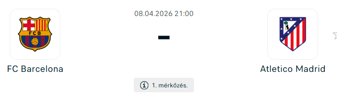 A Bajnokok Ligája negyeddöntőjének első felvonásán a Barcelona az Atlético Madridot fogadja a Camp Nouban, néhány nappal azután, hogy a két csapat bajnoki rangadón is összecsapott. Akkor a katalánok egy késői találattal kiharcolt győzelemmel erősítették meg pozíciójukat a tabella élén, és most a Bajnokok Ligájában is hasonlóan kiélezett csata várható.