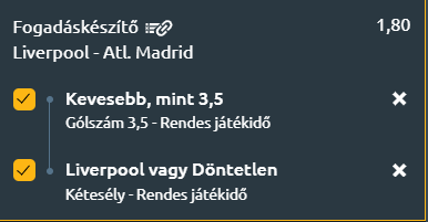 - A Liverpool hibátlan formában, hazai pályán szinte teljes kerettel várják a madridiakat. Az Atlético erejét megtépázza a sérüléshullám, amely miatt nehéz elképzelni, hogy maximális erőbedobással bírják majd az Anfield poklát. Bár a „Vörösök” támadójátéka helyenként visszafogott, védelmük az utóbbi hetekben stabilizálódott, így minden adott ahhoz, hogy egy szoros, kevés gólos mérkőzésen megszerezzék a három pontot. Biztonsági tippem a fogadáskészítővel 1X és kevesebb, mint 3,5 gól a meccsen!
