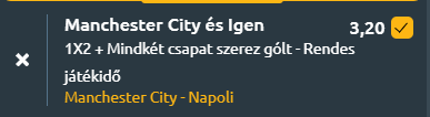 - A Manchester City hazai pályán hagyományosan erős, és Haaland formája tovább növeli előnyüket. A Napoli ugyan lendületben van a Serie A-ban, és De Bruyne visszatérése extra motivációt adhat számukra, de az angliai idegenbeli mérlegük gyenge. A statisztikák alapján a City favorit, de a Napoli támadósora is képes lehet betalálni. Hazai győzelmet várhatunk egy olyan meccsen, ahol mindkét gárda betalál majd és a meccs végén De Bruyne-ét élteti a stadion!