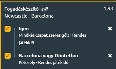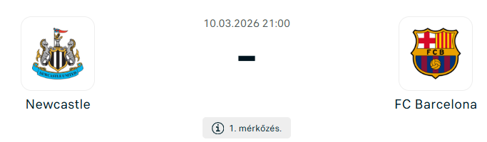 - A mérkőzés szoros, izgalmas összecsapást ígér, a Barcelona támadósora dominálhat, de a Newcastle is képes betalálni, így az első mérkőzés akár döntetlen is lehet, valamint mindkét csapat betalál majd.
