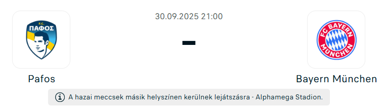 - A Bayern minden tekintetben erősebb csapat, mint a Pafosz. A bajorok támadójátéka az egész kontinensen kiemelkedik, hiszen sorozatban hét meccsen lőtt legalább három gólt, és Harry Kane félelmetes formája további garanciát jelent a gólokhoz. A Pafosz ugyan hazai pályán eddig megbízhatóan teljesített Európában, és jó formában is érkezik a mérkőzésre, ám védekezése nem mérhető a Bayern szintjéhez, ráadásul egyik kulcsvédőjét eltiltás miatt nélkülöznie kell. A ciprusiak esélye legfeljebb abban rejlik, hogy a vendégek a második félidőben rotálnak, ám minden jel arra mutat, hogy a német bajnok sima, sokgólos győzelmet arat, és magabiztosan menetel tovább a Bajnokok Ligájában.