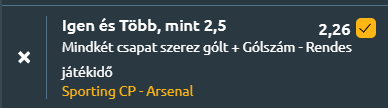 - Az Arsenal valamivel erősebb csapat, de a pillanatnyi forma és az idegenbeli helyszín kiegyensúlyozza ezt! Az Arsenal sorozatban nyolc negyeddöntős első mérkőzésén veretlen, míg a Sporting húsz hazai találkozó óta nem kapott ki. Minden adott egy kiegyenlített, gólváltásos összecsapáshoz, ahol legalább három gól lesz.