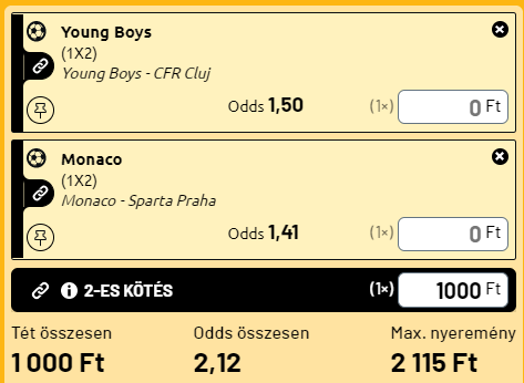 - A svájci bajnok Young Boys a CFR Kolozsvár ellen, a Monaco pedig a Sparta Praha ellen fogja hazai győzelemmel bebiztosítani a továbbjutást.