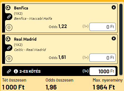 - A másik meccs már sokkal egyértelműbb történet. A portugál csapatok, különösen a három legjobb gárda, rendkívül erőteljesen támadnak, különösen hazai pályán. Ma az izraeli bajnok érkezik, amely talán az egész BL-csoportkör leggyengébb alakulata. AZ imént említett első meccs-faktor itt is számít, magabiztos hazai győzelemre számítok.