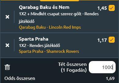 - Qarabag FK - Lincoln Red Imps: A Bajnokok Ligája második selejtezőkörének második mérkőzésén a Qarabag FK fogadja a Lincoln Red Imps csapatát hazai körülmények között. Az első meccs alapján kijelenthető, hogy a két gárda nincs egy szinten. Nagyon nincs! Az első mérkőzésen Juninho Vieira góljával közvetlenül a félidő előtt, majd Tural Bayramov 75. percben szerzett találatával 2-0-ra nyert Qarabag. Az azeri csapat dominálta a mérkőzést, 66%-os labdabirtoklással és 11 kísérletéből hét kaput eltaláló lövéssel. Az azeriek már szerepeltek a BL csoportkörében is, míg a Lincoln soha nem is fog. Javier Munoz Arevalo vezetőedző csapata a tavalyi Bajnokok Ligája selejtező első körében is találkozott Qarabaggal, ahol 6-1-es összesítéssel maradtak alul. A Quarabag félgőzzel, biztonsági focit játszva is bever egy-két gólt és magabiztosan megyeri ezt a meccset is úgy, hogy még csak gólt sem kap.