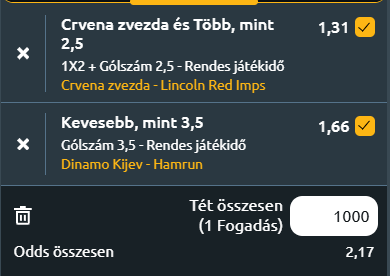 - Crvena Zvezda - Lincoln Red Imps: Belgrádban, a Bajnokok Ligája selejtező második fordulójának visszavágóján a Crvena Zvezda fogadja a gibraltári Lincoln Red Imps csapatát. Az első mérkőzést ugyan a szerb bajnok csak 1–0-ra nyerte idegenben, ám a piros lap miatt emberhátrányban játszottak a hajrában! Ma szórakoztathatják a szép számú közönségüket hazai környezetben egy gólgazdag és kiütéses győzelemmel! A Crvena Zvezda a szerb labdarúgás meghatározó együttese, amelynek célja nem csupán a hazai címvédés, hanem a Bajnokok Ligája csoportkörébe jutás is. Tavaly a klub a 29. helyen végzett az európai rangsorban, ami további fejlődést kíván meg a nemzetközi porondon. Az idei szezont kiváló formában kezdték: zsinórban három győzelemnél tartanak, legutóbb hazai pályán kiütéses, 7–1-es győzelmet arattak az OFK Beograd ellen. A lincolni odavágón ugyan csak egygólos előnyt szereztek, de Seol kiállítása befolyásolta a játék képét. A vezetőedző, Vladan Milojevic az előző bajnokin pihentette néhány kulcsemberét – köztük Milos Veljkovicot, Rodrigao-t és Aleksandar Katai-t –, ám ők mindannyian várhatóan kezdők lesznek a visszavágón. Emellett bemutatkozhat a frissen szerződtetett Marko Arnautovic is, aki az Intertől érkezett. A Lincoln Red Imps Gibraltár legsikeresebb klubja, ám az európai kupák csoportkörei eddig még mindig elérhetetlenek maradtak számukra. Tavaly közel jártak a Konferencia Liga főtáblájához, de a playoffban vereséget szenvedtek a Larne ellen. Az idei nemzetközi szereplést egy 4–2-es összesítésű győzelemmel kezdték a Vikingur ellen, ám a Crvena Zvezda elleni párharc már az első pillanattól komoly kihívásnak ígérkezett. A visszavágón a Crvena Zvezda egyértelmű esélyese a mérkőzésnek, különösen hazai pályán, ahol támadójátékuk még erőteljesebb lehet. Az elmúlt három mérkőzésükön összesen 12 gólt szereztek, és ha az első meccsen Seol nem kapott volna piros lapot, valószínűleg ott is nagyobb arányú győzelem születik. Ma az lesz!