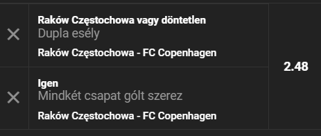 Ez a rovatom a Fogadáskészítő segítségével készült el. Az adott mérkőzést kielemezve 2-3 szempontból összeállított tippet küldök játékba, amelynek szorzója minden esetben a duplázó körüli értéket közelíti, de mégis jó esélyekkel indul! A Rakow Czestochowa közelebb kerülhet a Bajnokok Ligája csoportköréhez, ha ma este jó eredményt ér el a dán FCK ellen a Miejski Stadion Piłkarskiban.