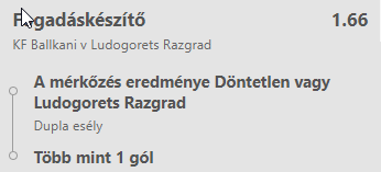 Ez a rovatom a Fogadáskészítő segítségével készült el. Az adott mérkőzést kielemezve 2-3 szempontból összeállított tippet küldök játékba, amelynek szorzója minden esetben a duplázó körüli értéket közelíti, de mégis jó esélyekkel indul! Egyaránt a Bajnokok Ligája csoportkörébe való bejutásra pályázó koszovói KF Ballkani és a bolgár Ludogorets Razgrad kedden kezdi meg az első körös selejtezőt.