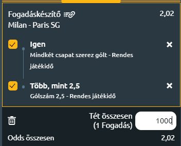 Ez a rovatom a Fogadáskészítő segítségével készült el. Az adott mérkőzést kielemezve 2-3 szempontból összeállított tippet küldök játékba, amelynek szorzója minden esetben a duplázó körüli értéket közelíti, de mégis jó esélyekkel indul! A Bajnokok Ligája csoportkörének negyedik fordulójában az AC Milan a PSG-t fogadja. Legutóbb Párizsban 3-0-ra nyert a PSG csapata.