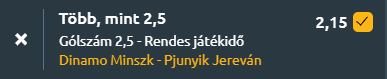 Egy Single Value Tipp következik, vagyis a sportfogadásban egy olyan értékelhető szorzó, amely single játékba küldés esetén is értéket hordoz magában! A Dinamo Minszk hazai környezetben fogadja a Pjunyik Jereván csapatát.