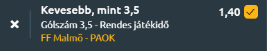 Tipp: Kevesebb, mint 3,5 gól a mérkőzésen