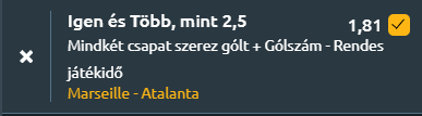 - Mire számíthatunk mindezek alapján? Pörgős és akciódús mérkőzés várható a Stade Vélodrome-ban, a Marseille hazai pályán rendkívül erős, míg az Atalanta legalább egy gólban bízhat. A gólváltás mellett legalább három találatra lehet számítani!