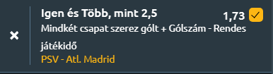 Tipp: Mindkét csapat szerez gólt + több, mint 2,5 gól a meccsen