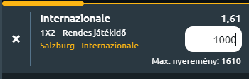 Egy Single Value Tipp következik, vagyis a sportfogadásban egy olyan értékelhető szorzó, amely single játékba küldés esetén is értéket hordoz magában! A Bajnokok Ligája csoportkörének negyedik fordulója keretében a Salzburg szerdán 21 órakor az Intert fogadja a Red Bull Arénában.