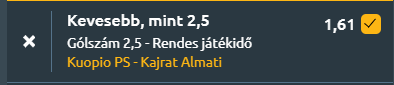 Ezek az ötletek kiválóan alkalmasak arra, hogy egy kétmeccses duplázóban az egyik tagot adják. Az odds alacsonyabb, viszont ezzel párhuzamosan a kockázat mértéke csökken! A finn KuPS fogadja hazai környezetben a kazah Kajrat Almaty csapatát a BL selejtezők második lépcsőfokán. Mindkét csapat visszafogott támadójátékot mutatott az előző körben, így egy szoros, kevés gólt hozó mérkőzésre van kilátás.