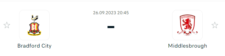 - A Bradford stabilan, ha nem is látványosan, de megkezdte a League Two küzdelmeit, hiszen az első kilenc mérkőzéséből 13 pontot szerzett, amivel a 11. helyen áll, de csak két pontra a rájátszástól. Azt lehet észrevenni, hogy a csapat kezd magára találni és elkapni a fonalat, hiszen hat meccs óta veretlenek, de ebből három döntetlent értek el, legutóbbi hazai meccsükön 1-1-es döntetlent játszottak a Harrogate Town ellen. Mark Hughes csapata sok meccsen jobban nézett ki idegenben, hiszen az EFL-kupa első két fordulójában az Accrington Stanley-t és a Wrexhamet is legyőzte idegenben. A Middlesbrough valószínűleg sokkal nagyobb kihívást jelent majd, hiszen két osztállyal feljebb található. Tekintettel arra, hogy a Bradfordnak a legjobb formáját kell nyújtania ahhoz, hogy esélye legyen a továbbjutásra, Hughes valószínűleg nem fog túl sok változtatást eszközölni a csapatában. Emmanuel Osadebe helyettesítheti Clarke Oduort a jobbszélen, aki a legutóbbi mérkőzésen csereként lépett pályára, míg Taylor Smith a támadósorban kaphat szerepet Jamie Walker helyett, miután a legutóbbi fordulóban gólt szerzett a Wrexham ellen.