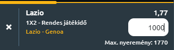 Talán a legnagyobb keresési találatot a sportfogadás témában a „Bet of the day” kulcsmondatra kapunk az interneten, vagyis a sportfogadást kedvelő olvasók arra kíváncsiak, mi lehet a nap tippje? Ezt a tippet keressük, amelyben van érték, érdemes single játékba küldeni. A Serie A két csapata, a Lazio és a Genoa csap össze a Coppa Italia 1/8-as döntőjében. Az összecsapást kedden 21 órakor rendezik az Olimpico Stadionban.