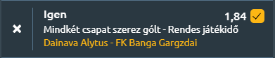 - A litván bajnokság egy újabb, mérkőzést kínál, ahol minden adott a gólváltáshoz. A Dainava és a Banga párharcai rendszerint izgalmas, találatokban gazdag összecsapásokat hoznak. Az áprilisi egymás elleni meccsen a Banga 2-1-re diadalmaskodott, és az utolsó öt egymás elleni találkozójuk átlaga is ezt támasztja alá. Ezen időszak alatt a Dainava meccsenként 2.4 gólt lőtt átlagban, és a Banga is meglőtte az átlag egy gólt meccsenként. A hazaiak most gyengébben teljesítenek a szezonban, mindössze 0.75 gólt átlagolnak, miközben 2.13-at kapnak és ez a védelem van olyan gyenge, hogy Banga eredményes lehet! Ugyanakkor a Dainava saját közönsége előtt igyekszik majd javítani, támadó felfogással lép fel egy másik verhető csapat ellen és kihasználja majd a vendégek esetleges hibáit. A Banga az elmúlt öt meccsen csak egy esetben nem kapott gólt, ami azt jelzi, hogy a védelmük gólképes! Mindezek alapján valószínűnek tűnik, hogy mindkét csapat megtalálja az utat a kapuba.