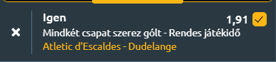- A Európa Konferencia Liga izgalmas párharcát játsszák a Camp de Futbol Municipal d'Encamp stadionban, ahol az Atlètic Club d'Escaldes és az F91 Dudelange csap össze és az előjelek alapján nyílt, gólgazdag találkozóra van kilátás. A Dudelange az utóbbi öt mérkőzésén átlagosan 2,4 gólt szerzett, miközben csak 1,2-t kapott. Az Escaldes ugyan gyengébb formát mutatott, öt vereséggel és mindössze 0,2 gólos átlaggal, de 2,2-es kapottgól-átlaguk azt jelzi, hogy védekezésük sebezhető, így a Dudelange akár többször is betalálhat. A korábbi egymás elleni meccseken is Dudelange volt eredményesebb (átlagosan 1,5 gól/mérkőzés), még ha az Escaldes eddig nem is szerzett gólt ellenük, most viszont a hazai pálya előnye és a statisztikák szerint nagy valószínűséggel most megtörhet ez a sorozat. A sok gól mellett várhatóan a gólváltás is bekövetkezhet.