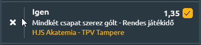 - A finn Kakkonen bajnokság B csoportjának 13. fordulójában felsőházi rangadót rendeznek, ahol a harmadik helyen álló HJS Akatemia hazai pályán fogadja az éllovas TPV Tampere csapatát. A gólra éhes publikum örülhet majd, hiszen mindkét együttes támadójátéka kiemelkedő, de beszéljenek a számok! A TPV 12 meccsen 33 gólt szerzett, míg a HJS 27 találatot jegyez. A kapott gólok száma is hasonlóan magas (TPV: 15, HJS: 16), ami a védekezés sebezhetőségét jelzi. A legutóbbi egymás elleni mérkőzésük 1–1-es döntetlennel zárult, ami szintén a gólváltás valószínűségét erősíti. A TPV idegenben különösen eredményes, az elmúlt hat vendégmeccsén öt győzelmet aratott, és minden alkalommal betalált. A HJS hazai pályán szintén aktív támadójátékot mutatott, az utóbbi három otthoni meccsén összesen tíz gólt lőtt. A statisztikák szerint a TPV idegenbeli mérkőzéseinek 80%-án, míg a HJS hazai meccseinek 50%-án mindkét csapat betalált. Mindezek alapján egy nyílt, lendületes, gólváltásban gazdag összecsapásra van kilátás, ahol mindkét fél szerez gólt!