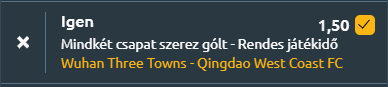 - A kínai Szuperliga 11. és 8. helyezettje csap össze a Wuhan Sports Center Stadionban, ahol a Wuhan Three Towns hazai pályán fogadja a Qingdao West Coast csapatát. A statisztikák és a korábbi mérkőzések alapján izgalmas, kiegyenlített találkozóra van kilátás, ahol mindkét oldalon jó eséllyel születhetnek gólok. Lássuk is, hogy miért! A Wuhan Three Towns szezonbeli mérlege gólokkal teli! Meccsenként átlagosan 1,38 gólt szereznek, miközben 1,88-at kapnak, tehát védekezésük sebezhető, de támadásban viszonylag eredményesek. Legutóbbi öt meccsükön 1,6-os gólátlagot értek el, és ugyanennyit kaptak is, utolsó mérkőzésükön például 2-2-es döntetlent játszottak a Chengdu Rongcheng ellen, ami szintén gólgazdag játékra utal. A Qingdao West Coast kiegyensúlyozottabb statisztikákat produkál, szezonátlagban 1,31 gólt szerez és 1,5 gólt kap mérkőzésenként. Mindezek alapján, főleg a hazaiak gólérzékeny, de sok hibát vétő védekezése és a korábbi, többgólos egymás elleni találkozók miatt reális, hogy mindkét csapat betaláljon ezen a mérkőzésen.