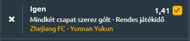 - A kínai Szuperliga két középcsapata, a 9. helyezett Zhejiang és a 7. helyen álló Yunnan Yukun csap össze a Xuzhou Olympic Sports Centre Stadionban, ahol a statisztikák alapján kiegyenlített, ugyanakkor támadószellemű mérkőzés várható. A gólváltás esélyét több tényező is erősíti, lássuk is! A Zhejiang szezonátlaga is erre utal, hiszen 1,81 gólt szerez és 1,56-ot kap meccsenként, míg a legutóbbi öt találkozóján átlagosan 1,6 gólt lőtt és 1,2-t kapott. A Yunnan Yukun sem marad el ebben, hiszen szezonátlaga 1,38 szerzett és 1,5 kapott gól, az elmúlt öt meccsén pedig átlagosan 1,4-szer talált be és 1,0-s gólt engedett. Az elmúlt tíz találkozójukon mindkét oldalon hétszer fordult elő, hogy mindkét csapat gólt szerzett, és a Zhejiang nyolc, a Yunnan Yukun pedig hét alkalommal játszott 2,5 gólnál több találatos mérkőzést, ami támadó felfogású futballt mutat. Az egymás elleni mérleg is kiegyenlített: legutóbb 1-1-es döntetlent játszottak, ami azt jelzi, hogy mindkét fél képes áttörni a másik védelmét. Mindezek alapján a két csapat hasonló formája, a szezonbeli gólátlagok és a korábbi találkozó is alátámasztja, hogy jó eséllyel mindkét oldalon gól születik.