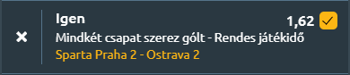 - A cseh másodosztály is kezdetét veszi, ahol két élcsapat tartalékegyüttese találkozik az első fordulóban. Egy izgalmas és mozgalmas mérkőzésre van kilátás, ahol jó esély van arra, hogy mindkét csapat betalál. Lássuk a számokat! Bár a legutóbbi egymás elleni mérkőzésükön a Banik Ostrava B 1-0-ra győzött, a korábbi két összecsapás átlaga alapján a Sparta Praha B meccsenként 1,0, míg a Banik Ostrava B 1,5 gólt szerzett, ami szintén a támadószellemű játékot mutatja. A Sparta Praha B az utóbbi öt találkozón (minden meccset figyelembe véve) átlagosan 1,4 gólt szerzett és mindössze 0,4-et kapott, míg a Banik Ostrava B gyengébb formában, de mégis 0,4 gólos átlaggal termelt és 1,2-t kapott meccsenként. A vendégek védekezésének sebezhetősége, valamint a hazaiak támadó hatékonysága mellett az is gólváltásra utal, hogy mindkét fél a tabella élén harcol, így várhatóan nyíltabb játékot vállalnak. Mindezek alapján jó eséllyel mindkét oldalon gól születhet ezen a rangadón.
