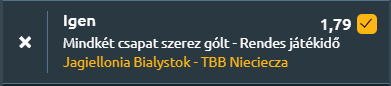 - Megkezdődik a lengyel élvonalbeli bajnokság, ahol a tavalyi bronzérmes fogadja az újoncot. A mérkőzésen aktív támadójátékot és izgalmas és nyílt meccset várhatunk, hiszen a Jagiellonia hazai pályán nem csak a három pontot szeretné megszerezni, hanem egy szép győzelemmel lendületet és önbizalmat is venne a bajnokság következő fordulóira is. A vendégegyüttes újonc létén csak egyet szeretne bent maradni, viszont az erősebb csapatok elleni-, idegenbeli meccseiken (mint ez is), semmi tét és elvárás nincs a vállakon, gyakorlatilag esélytelenként felszabadultan fociznak majd! És ez gólt eredményezhet. A várható gólváltást a számok is alátámasztják. A két csapat utóbbi 10 mérkőzéséből mindkettőjük esetében 8-szor fordult elő, hogy mindkét fél betalált. A Jagiellonia legutóbb 1-1-es döntetlent játszott a Pogoń Szczecin ellen, míg a Nieciecza 2-1-re győzte le a Kotwica Kołobrzeg együttesét. Az egymás elleni mérlegben a hazaiak vezetnek, hiszen az utóbbi öt találkozójukból hármat megnyertek, egyszer kaptak ki és egyszer döntetlent játszottak, ám a legutóbbi egymás elleni meccsen a Nieciecza 2-1-re nyerni tudott. A gólok szempontjából mindkét csapat formája biztató: a Jagiellonia az utóbbi öt mérkőzésén 1,2 gólt szerzett és 1,4-et kapott átlagban, míg a vendégek támadójátéka kimondottan erős, 2,4-es gólátlaggal és ugyanekkora kapott gólátlaggal. A mai találkozón jó eséllyel gólváltás várható.