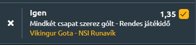 - A Feröer szigeteken rendkívül támadó felfogásban játszanak a csapatok, különösen a jobb gárdák! Ezen a bajnoki meccsen a 4. helyen álló Vikingur fogadja a 2. helyezett NSI Runavik alakulatát. A hazaiak az eddig lejátszott 18 meccsen kilenc győzelmet, hat vereséget és három döntetlent értek el. 26 gólt lőttek és 19-et kaptak. A csapat átlagosan 1.44 gólt szerez-, miközben picivel több, mint egy gólt kap átlagosan meccsenként. Legutóbb egy gólgazdag meccsen 4-2-re verték a B36 Torshavn csapatát. A Runavik esetében más a helyzet! A szezon során eddig tizenhárom győzelmet arattak, háromszor kaptak ki, és kétszer játszottak döntetlent. A csapat támadójátéka különösen figyelemre méltó, 68 gólt szereztek a 18 bajnokin, ami a legtöbb a ligában! Ez azt jelenti, hogy mérkőzésenként átlagosan 3.78 gólt szereznek, miközben 1.22 gólt kapnak. Jó formában vannak, a legutóbbi mérkőzésükön 1-0-ra győzték le a 07 Vesturt. Mindezek alapján egy látványos, gólokban gazdag mérkőzésre van kilátás, ahol mind a Víkingur, mind az NSÍ támadójátéka érvényesülhet és mindkét gárda betalál majd.