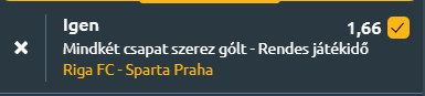 - Konferencia Liga playoff második mérkőzés, a két gárda között komoly minőségi különbség van, a csehek az odavágón 2-0-ás előnyt építettek fel. A statisztikák is azt jelzik, hogy a találkozón gólokból nem lesz hiány. Lássuk is a számokat! A Riga az eddigi Konferencia Liga-szereplésében vegyes eredményeket mutatott, két győzelem, két vereség és egy döntetlen áll a nevük mellett, miközben átlagosan 1,8 gólt szereznek és ugyanennyit kapnak is. Bár a legutóbbi egymás elleni meccsükön 2–0-ra kikaptak Prágában, hazai pályán mindenképpen szeretnének visszavágni, különösen úgy, hogy az utóbbi tíz meccsük közül hétszer három vagy több gól született. Nincs is más lehetőségük, meg kell próbálni a lehetetlent! A Sparta Praha kifejezetten jó formát mutat! Eddigi öt Konferencia Liga-találkozójukból négyet megnyertek és csak egyszer kaptak ki. Átlagosan 2,6 gólt szereznek és mindössze 0,8-at kapnak, ami erős támadójátékra és stabil védelemre utal. A legutóbbi bajnokin a Dukla Praha ellen is bizonyítottak, hiszen 3–2-re diadalmaskodtak. A Riga hazai mérkőzései általában gólgazdagok, és átlagban több mint három gólt hoznak az utóbbi öt meccsük. A Sparta szintén jó támadójátékot mutat, és bár védekezése erős, a legutóbbi 3–2-es bajnoki győzelmük azt mutatja, hogy sebezhetők is. Mindez azt vetíti előre, hogy a mérkőzésen mindkét együttes betalálhat.