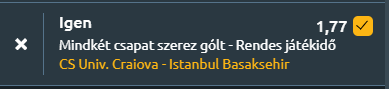 - Romániában is rendeznek egy izgalmas Konferencia Liga-visszavágót, ahol az Universitatea Craiova hazai pályán fogadja az İstanbul Başakşehir csapatát. A múlt heti első mérkőzésen a Craiova idegenben 2–1-re győzött, így előnyből várhatja a visszavágót, de az összecsapás továbbra is nyílt és gólgazdag küzdelmet ígér. Az Universitatea Craiova kiváló formában érkezik a találkozóra, hiszen az elmúlt öt mérkőzésükön négy győzelmet és egy vereséget könyvelhettek el, miközben mérkőzésenként átlagosan 1,6 gólt szereztek és 1,2-t kaptak. Az idényben a Konferencia Ligában három győzelem és két vereség szerepel a nevük mellett, átlagban 2,2 gólt szerezve mérkőzésenként, miközben 1,4-et kaptak. Az İstanbul Başakşehir szintén jó formát mutat, három győzelem, egy vereség és egy döntetlen szerepel az idei Konferencia Liga mérlegükben, átlagosan két gólt szerezve és 0,8-at kapva meccsenként. Az elmúlt öt találkozójukon két győzelem, egy vereség és két döntetlen a mérlegük, miközben 2,0 gólt értek el és 1,0-t kaptak. A kiegyensúlyozott támadójáték, az előző találkozó eredménye és az idei statisztikák mind azt jelzik, hogy a mérkőzésen mindkét oldalon születhetnek gólok, így gólgazdag összecsapásra lehet számítani.