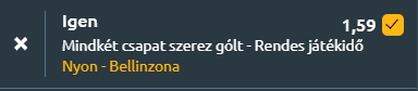- A svájci Challenge League mai játéknapján a Stade Nyonnais hazai pályán, a Centre sportif de Colovray stadionban fogadja a Bellinzonát. A két csapat közvetlen riválisnak számít, hiszen a tabellán elfoglalt helyezéseik alapján egy kiélezett, nyílt és gólokban gazdag mérkőzésre van kilátás. A Stade Nyonnais a bajnokság középmezőnyében, a hatodik helyen áll, és teljesítménye eddig hullámzó volt. A szezonban egy győzelmet, két döntetlent és két vereséget könyvelhetett el, miközben 1,4 gólt szerez átlagosan, de védekezésben sebezhető, hiszen meccsenként 2 gólt kap. Legutóbb idegenben ért el 1–1-es döntetlent az Étoile Carouge ellen. A Bellinzona nehezebb helyzetben van, hiszen jelenleg a tizedik helyen, a tabella alján található. A szezon során eddig még nem tudott győzni: három vereség és két döntetlen a mérlege. Támadójátéka eddig visszafogott, hiszen csak 0,6 gólt szerzett meccsenként, ugyanakkor védekezése kifejezetten gyenge, mivel 2,8 gólt kap átlagosan. Legutóbb 0–0-s döntetlent játszott az Yverdon Sport ellen. A Stade Nyonnais hazai pályán veszélyes és rendre szerez gólokat, miközben védekezésében mindig benne van a hiba. A Bellinzona ugyan gyengélkedik, de támadójátéka az utóbbi meccseken javult, és az egymás elleni összecsapások is rendre gólváltással zárultak: az utóbbi öt találkozón mindkét fél eredményes volt, átlagosan 1,6 illetve 1,4 góllal. Mindezek alapján erősen valószínű, hogy ezúttal is mindkét csapat betalál, így egy nyílt, gólváltással járó mérkőzés várható Nyonban.