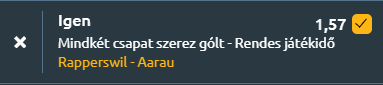 - A svájci Challenge League mai játéknapján a Rapperswil-Jona a hazai Stadion Grünfeldben fogadja az éllovas Aaraut. A két csapat között jelentős különbség látszik a tabellán és a formákban, de a statisztikák szerint mindkét fél eredményes lehet a mérkőzésen. A Rapperswil-Jona a Challenge League ötödik helyén áll, és vegyes teljesítményt mutat a szezonban. Eddig két győzelmet és három vereséget könyvelhetett el, miközben mérkőzésenként átlagosan 1 gólt szerez és 1,4-et kap. Legutóbb idegenben 1–3-ra győzte le a Wilt, ami mutatja, hogy képes gólokat szerezni, ugyanakkor védekezése továbbra is sebezhető Az Aarau vezeti a Challenge League-t, és eddig hibátlan teljesítményt nyújtott, öt győzelem, nulla vereség, nulla döntetlen, miközben meccsenként átlagosan 2,8 gólt szereznek és 1-et kapnak. Legutóbb 3–0-ra győztek a Stade Lausanne-Ouchy ellen, ami mutatja a támadójáték erejét és stabilitását a védelemben. A hazai csapat támadóformája és az Aarau kiemelkedő gólerőssége alapján reális, hogy mindkét fél betalál. A múltbeli összecsapások és a jelenlegi formák alapján a mérkőzés nyílt, gólgazdag összecsapásnak ígérkezik, ahol a támadások dominálhatnak, és a gólváltás valószínűsíthető.