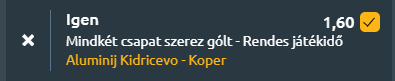 - A szlovén 1. SNL negyedik fordulójában az Aluminij a Športni Park Aluminij stadionban fogadja a tabella második helyén álló Kopert. A két csapat formája alapján gólgazdag összecsapásra számíthatunk, ahol mindkét fél képes lehet betalálni. Az Aluminij a 1. SNL jelenlegi negyedik helyén áll, és eddig a szezonban három győzelmet, két vereséget és egy döntetlent könyvelhetett el. Meccsenként átlagosan 1,5 gólt szereznek és ugyanennyit kapnak. Legutóbbi mérkőzésükön 0–2-re győzték le a Domžalét idegenben, ami a csapat támadópotenciálját és kiegyensúlyozott formáját mutatja. A Koper a 1. SNL második helyén áll, és eddig a szezonban négy győzelmet, egy vereséget és egy döntetlent ért el. Átlagosan 2 gólt szereznek és 1,17-et kapnak mérkőzésenként. Legutóbb 2–1-re győzték le a Murát, miközben az elmúlt öt meccsükön átlagosan 2,2 gólt szereztek és 2,2-őt kaptak. Az utóbbi 10 mérkőzésükön nyolcszor esett 2,5 gól feletti találat! A hazaiak kiegyensúlyozott góltermelése és a vendégek támadójátéka miatt logikus, hogy mindkét fél betalál, így egy nyitott, gólgazdag mérkőzés várható, ahol mindkét gárda betalál majd.